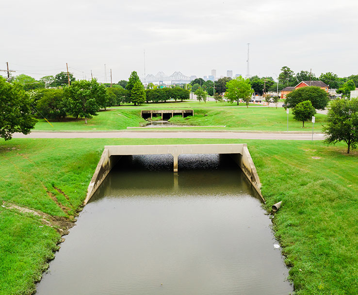 Everybody knows the Crescent City is shaped more like a bowl (we’re below sea level), and when it rains, it holds the water. Because there’s so much concrete, that water can’t go down into the ground. Instead, it flows to the drainage system where it’s pumped out.